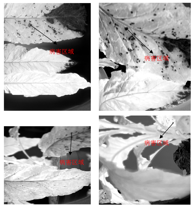 图9 正常绿叶与病害叶在680 nm处的灰度图像