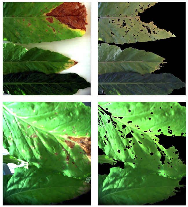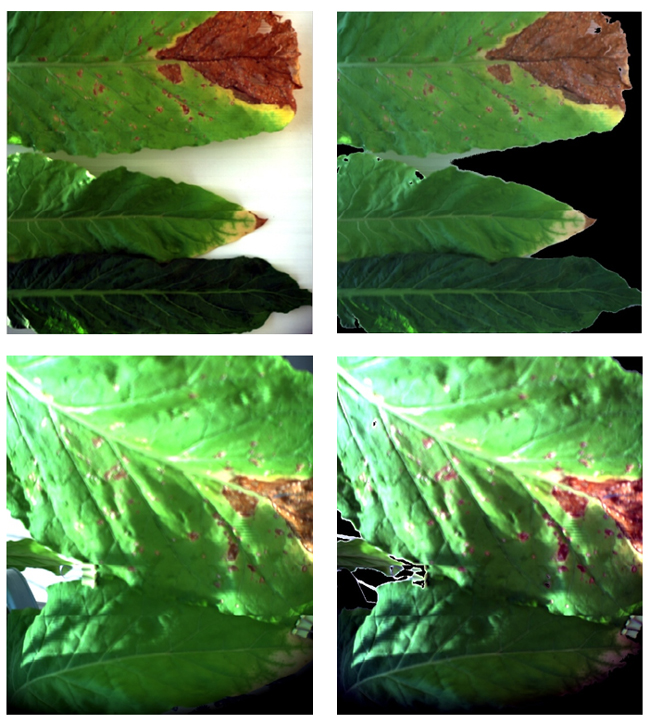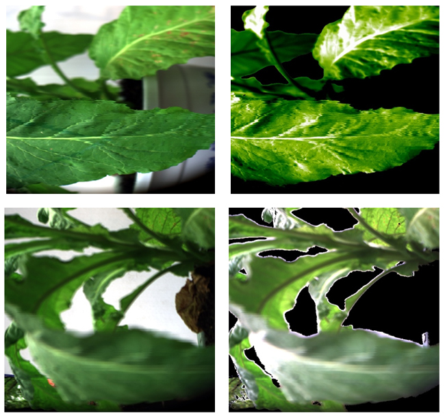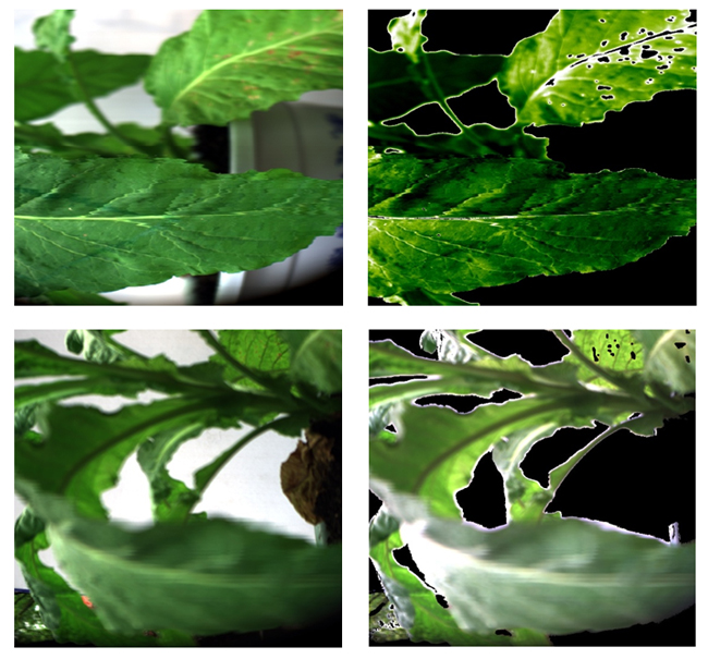图12 作物绿叶提取前后的图像(去除叶片病害区域)
