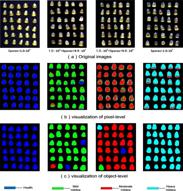 图17基于像素级和对象级的玉米籽粒霉变等级可视化