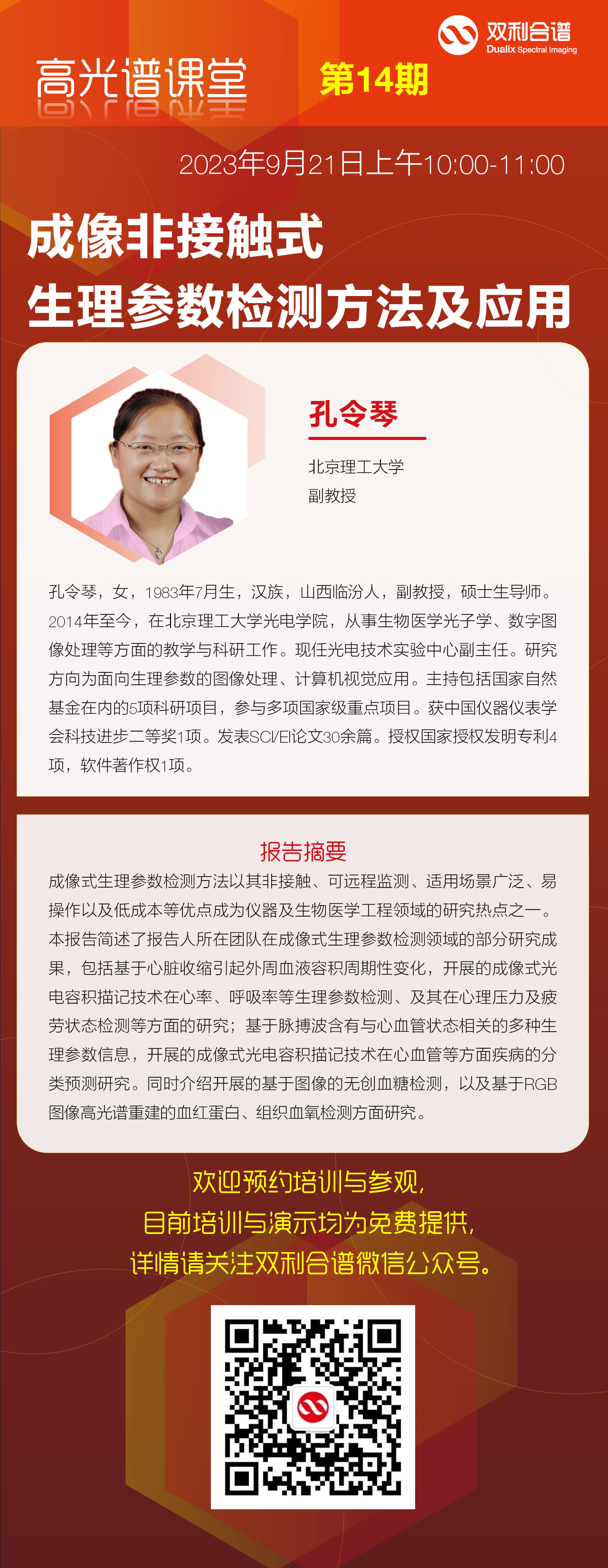 第14期高光谱课堂丨成像非接触式生理参数检测方法及应用