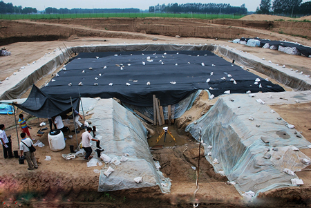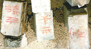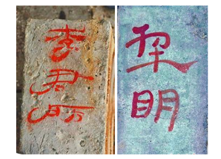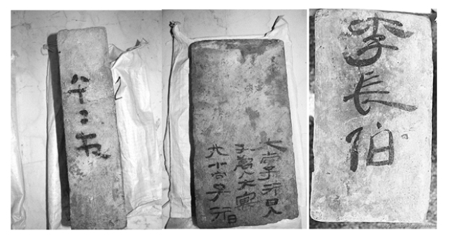 在定陶汉墓中,考古人员发现大量带有丰富文字的汉砖,这些汉砖数量空前,记录内容丰富,对于研究汉代的书法艺术、人文地理等都是十分珍贵的实物资料。为了防止墓砖的氧化、变质和以后更好地保存,考古人员还将每块墓砖进行了包装和编号。这些砖上有用朱砂或墨汁写的字迹、刻画的符号。经初步解读,内容多为人名或地名。这些文字中有一些是对墓主人在阴间富贵吉祥的美好祝愿,有一些则是墓砖监造人、制砖人、烧窑人的姓名、铭文、或者是代表工号或工匠字号,地名则有可能表明了墓主人的政治势力范围。