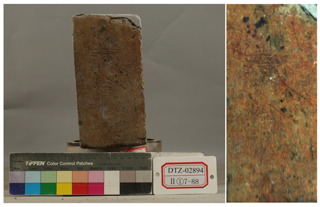 以山东定陶文字砖为样本,对文字砖等样品的可见近红外波段的(光谱范围400nm-1000nm)光谱进行分析,获取此波段处石砖以及相应出土文物上的字迹、刻画的符号等目标的特征光谱,同时也对部分文物在经过长时间的氧化、变质等破坏之后,其表现的光谱信息进行研究和分析,为后期的文字鉴定、保护提供依据和技术支持。