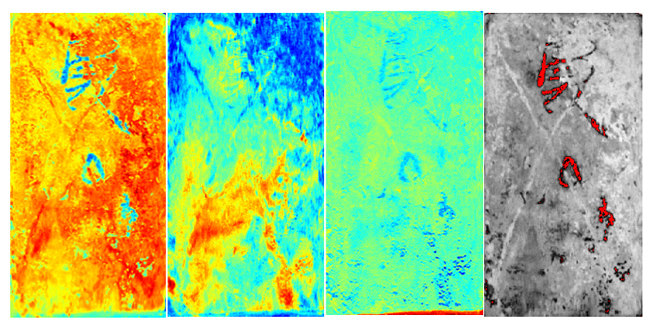 作为考古发掘,这些文字砖为我们提供了确认墓主和伴随出土文物年代的文字依据,为研究西汉时期的生活和丧葬习俗以及史实留下了珍贵实物资料。而能够利用现代测试技术对这些石砖上的文字进行相应的测试和鉴别等工作,是一个非常有意义的事项。本文利用现有的高光谱成像技术来对石砖上的文字、文字所使用的颜料、石砖上氧化以及变质部分进行检测,为更好的进行文物保护提供技术支持和相关技术探索。