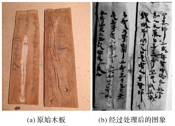 图4 柏木字迹原始图像与经过分析处理后图像的对比