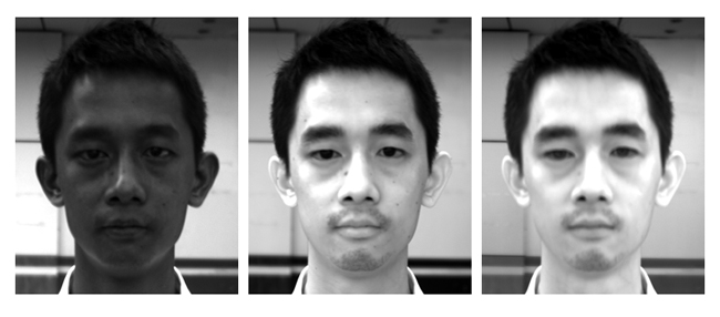 图9  人脸在400 nm、640 nm和800 nm的灰度图