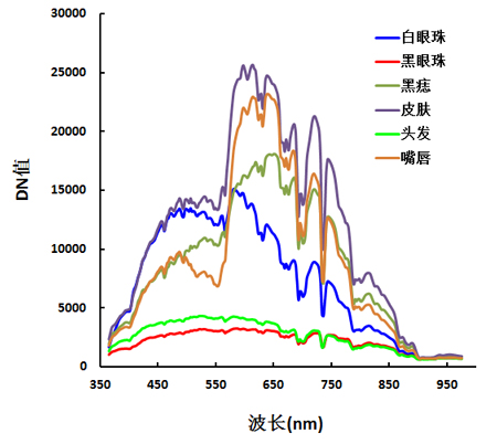 图8  人脸上各目标物在350-1000 nm范围内的DN值变化