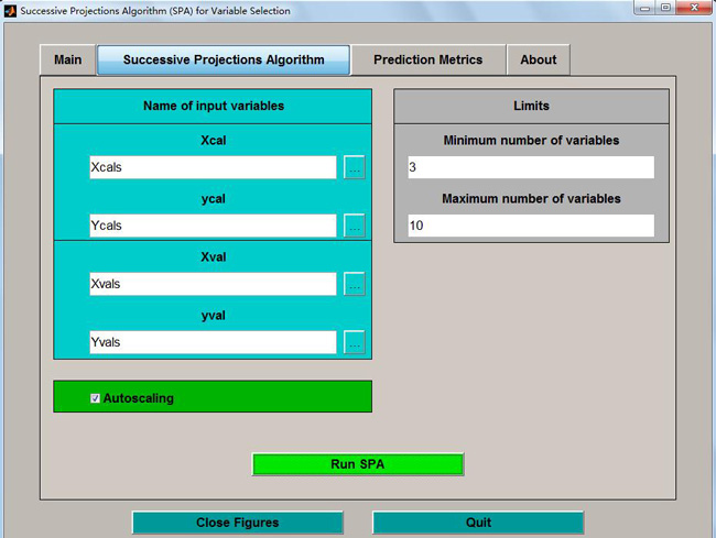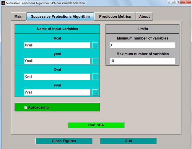 特征波段的选择对于建立稳定的光谱模型是至关重要的。采用全波段的光谱数据建立模型时,不仅计算工作量大,而且校正模型的预测精度也很难达到最优值。因此在建立校正模型前进行特征波段选择是很有必要的。目前,常用的特征波段选择方法有相关系数法、方差分析、逐步多元线性回归、粒子群算法、反向区间偏最小二乘法和连续投影算法等。其中连续投影算法是一种新型的波长选择方法,得到了越来越广泛的应用(成忠等, 2010; Moreira et al., 2009; Gomes et al., 2013; Talfan et al., 2015; Liu et al., 2009),本研究也采用该算法进行特征波段的提取。连续投影算法(Successive Projections Algorithm, SPA) (Araujo et al, 2001) 是一种能够从光谱信息中充分寻找含有最低限度的冗余信息的变量组,使得各变量之间的共线性达到最小。它是一种确定性的搜索方法,其变量选择的结果是可重现的,这对于验证集的变量选择会更稳健,它能够从严重重叠的光谱信息中提取有效信息,极小化光谱变量之间的共线性影响,简化校正模型和提高建模的速度和效率。