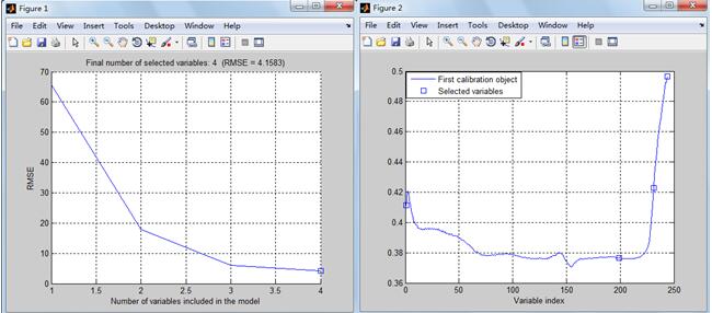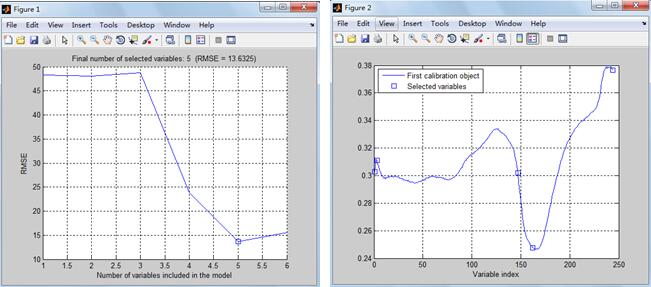 与砂岩研究相似,SPA运算过程所设定的特征个数为3-10,特征波个数根据RMSE确定,如图10Figure1所示,RMSE越小,水渗入时间的估算越精确,Figure2为确定特征波段的波段位置。表3分别列出了基于连续投影算法的砾岩随水侵时间的特征波长的波段位置,越靠前,其特征波段重要性越高,特征波段分别为1381.201430.59909.801698.22903.28 nm