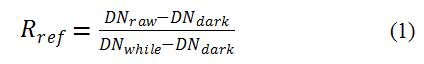 式中,Rref 是黑白校正过的图像的反射率值,DNraw 是原始图像的DN值,DNwhite为白板的白帧数据,DNdark 是相机的系统误差DN值。