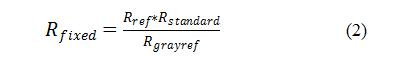 式中,Rfixed 是消除大气、水汽等因素后的图像光谱反射率,Rref是经过黑白校正后的图像反射率,Rstandard是经过国家计量院标定的灰布的光谱反射率,Rgrayref 是经过黑白校正后图像中灰布的光谱反射率。