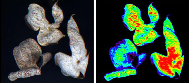 图8新会市陈皮里层不同年份的RGB图和分类识别图
