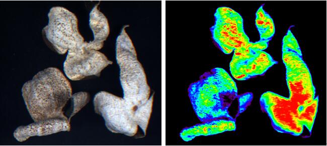 试验用的不同时间、不同产地的陈皮药材数据由中山大学提供,成像高光谱采集陈皮成像数据时,将陈皮尽量展平,分别采集陈皮的内外两面高光谱数据。