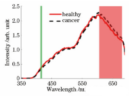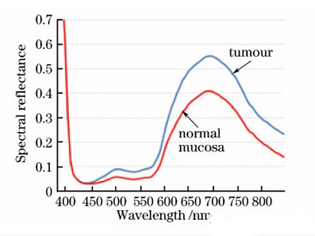 图 显示了正常粘膜组织和肿瘤组织的光谱反射曲线。