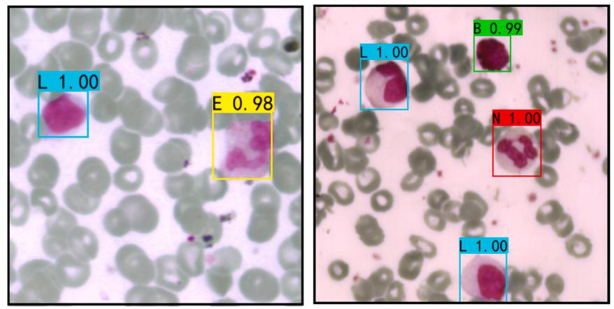 图8 基于伪彩色图像的Faster RCNN对白细胞的检测结果