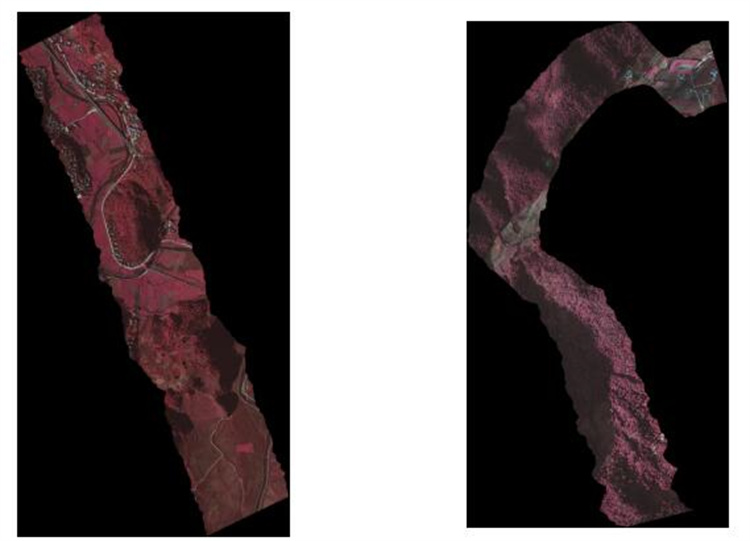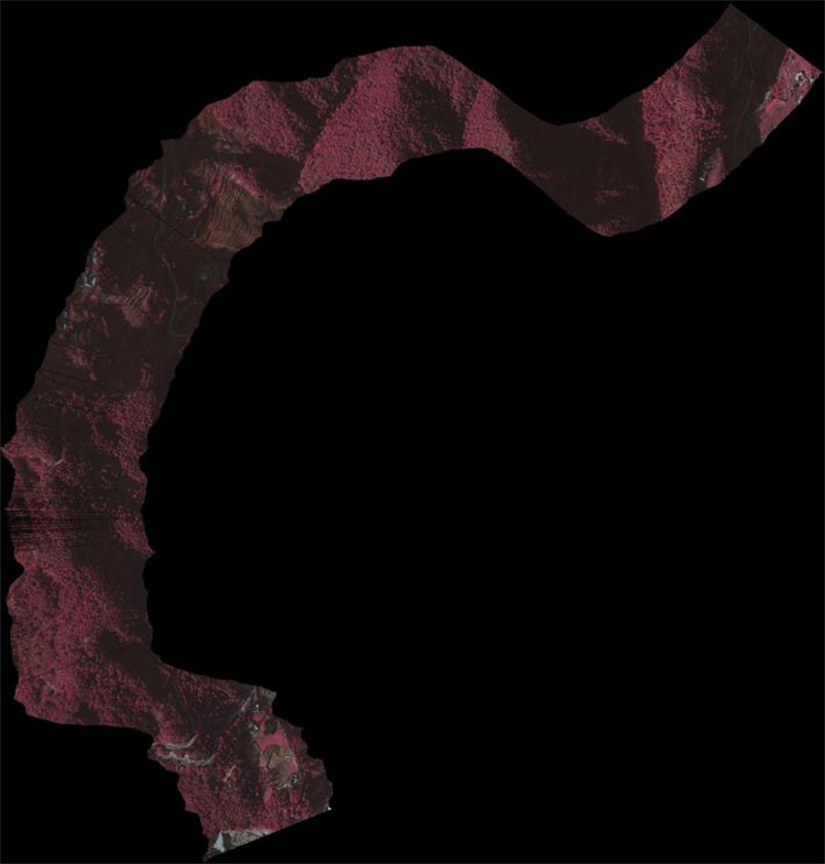 图5为江苏通宝TB888科技有限公司的高光谱成像系统在2000米高空下获取的地物成像高光谱数据,从中获取地面的光谱信息并进行分析数据。