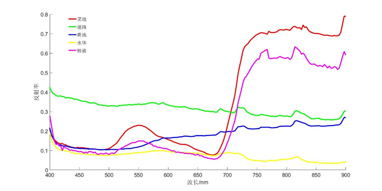 图8 4 400-1000nm波段相机不同目标的光谱