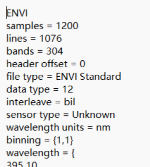 .hdr 文件是纯文本,由 ENVI 标准定义,记录整个高光谱图像的所有关键信息samples(宽度 W)