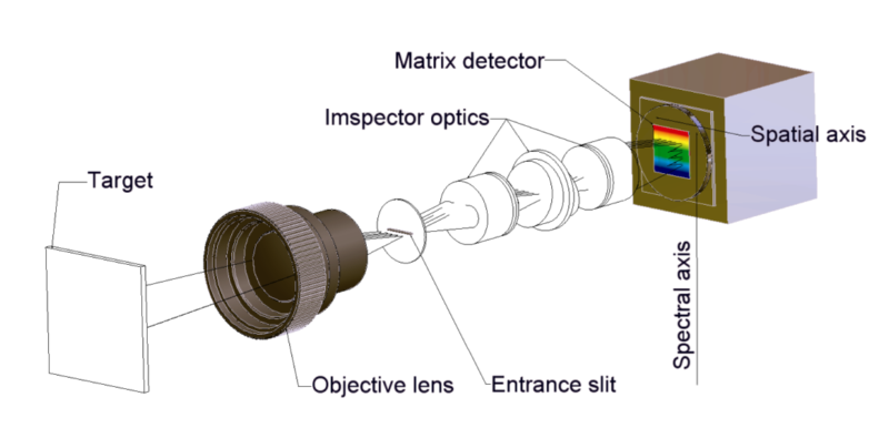 也叫线阵相机,每次只采集一条线(X 方向),在样品或相机移动过程中完成 Y 方向扫描。成像过程为:每次成一条线上的像后(X方向),在检测系统输送带前进的过程中,排列的探测器扫出一条带状轨迹从而完成纵向扫描(Y方向)。综合横纵扫描信息就可以得到样品的三维高光谱图像数据。