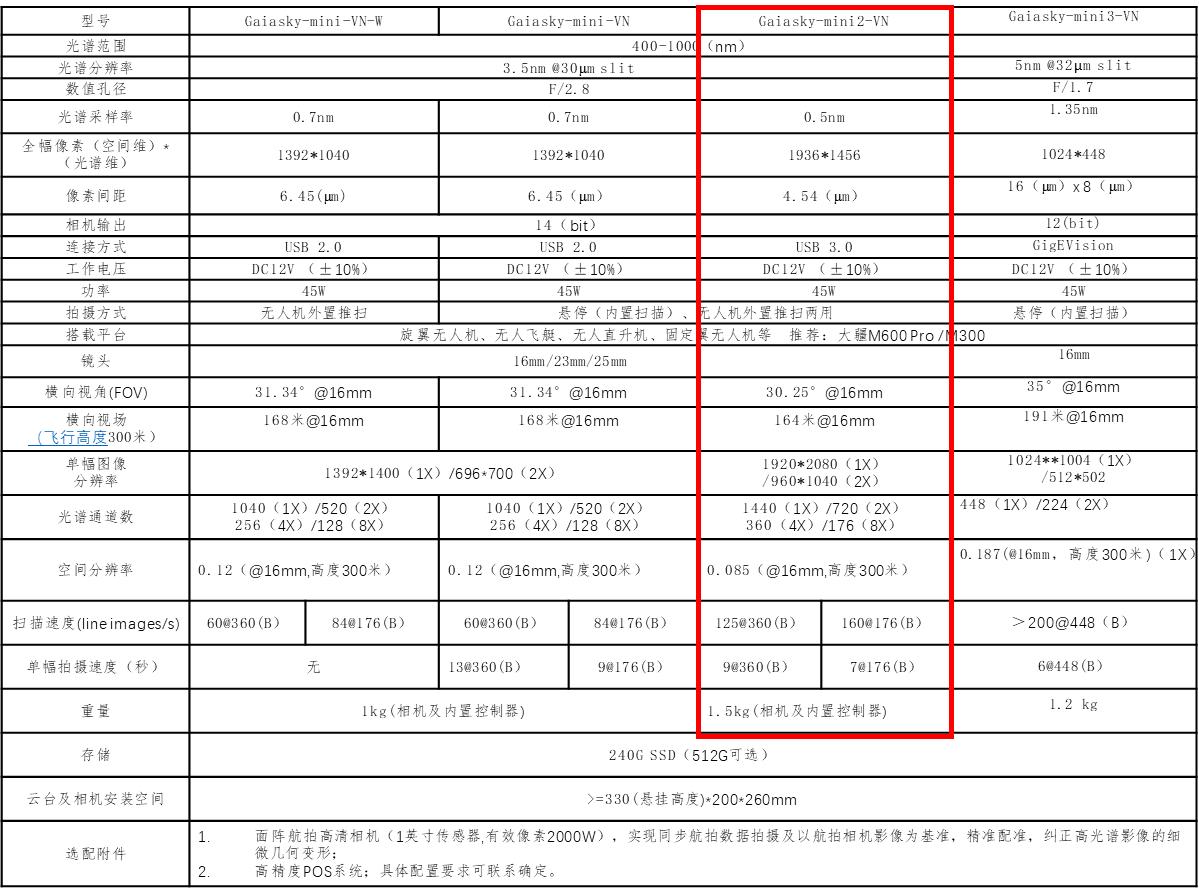 本文采用的高光谱设备(GaiaSky-mini2)具体参数如图5所示。