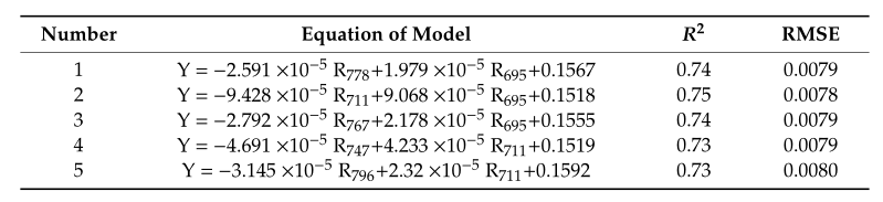 本研究采用简单线性回归以及多元线性回归模型对SMC进行估测,并以RMSE、R2、MAE作为评价标准。