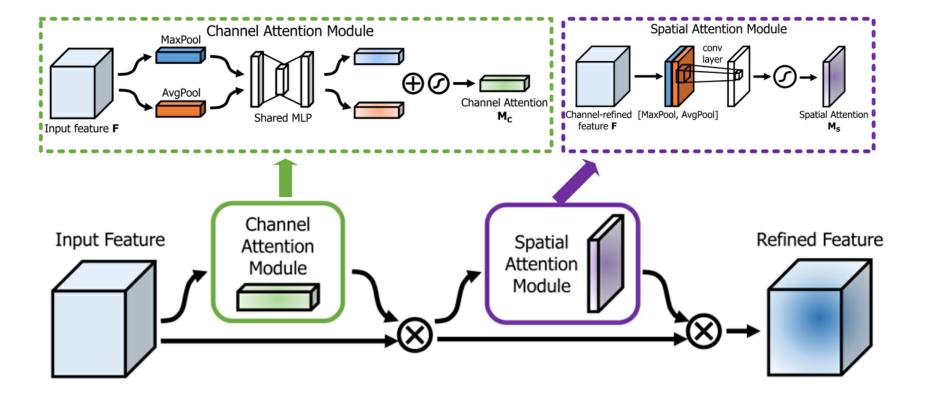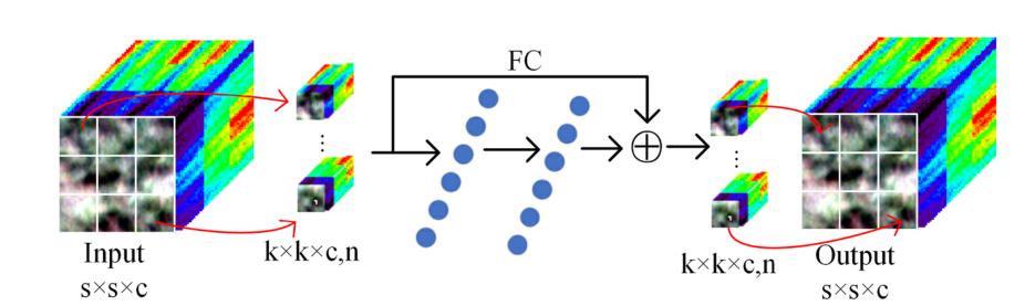本研究中使用了局部特征增强模块(Local feature enhancement, LFE)(图2)和全局特征增强模块(Global feature enhancement, GFE)(图3)。LFE使用二维卷积来学习HSI的局部特征,并使用残差结构来增强特征重用。GFE通过FC层学习各子patch之间的相关特征,获得全局特征信息。CBAM模块包括通道注意模块和空间注意模块,如图4所示。