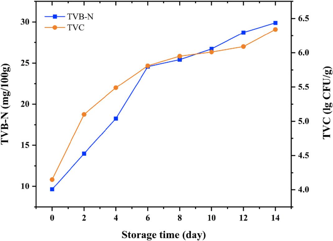 图2 鸡肉样本TVB-N和TVC含量的变化(储藏期14天)