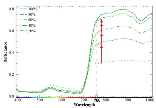 HSVI = [(2ρ760−1)−ρ689+a×(ρ861−ρ889)]/(ρ520+ρ689) |
