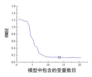 利用SPA从全光谱数据中挑选出*有效的特征波长,减少冗余变量。如图3(a)所示,设置特征波段数量范围为10至32个,经过反复测试,当变量个数为13时,使用的特征波长组合具有最小的校正均方根误差(RMSE=0.2797)。最终筛选出的特征波段为:425、433、437、453、552、639、670、680、690、715、741、819、909nm,占全部波段的5.08%。