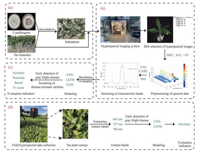 论文摘自,欢迎下载浏览: Mao, Y., Li, H., Xu, Y., Wang, S., Yin, X., Fan, K., Ding, Z. and Wang, Y. (2024), Early detection of gray blight in tea leaves and rapid screening of resistance varieties by hyperspectral imaging technology. J Sci Food Agric. http://doi.org/10.1002/jsfa.13756