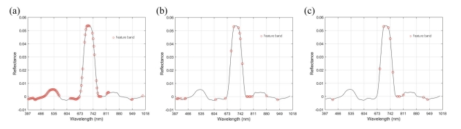 为了剔除无效信息,采用SUVE、CARS和SPA选择所有光谱数据中有代表性的波段作为“特征波段”(图3)。筛选出对轮斑病响应最为敏感的三个关键波段(红光区)—— 693 nm、727 nm和766 nm,为轮班病的高*检测奠定了坚实基础。