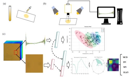 在肾脏疾病研究中,利用尿样进行*确的肾小球疾病诊断对于治*和预后至关重要。传统方法依赖于有创性活检,这存在风险并由于病理学家的差异而不一致。因此,迫切需要创新的诊断工具,以提高传统方法的效率,确保疾病检测的准确性和一致性。本研究提出了一种创新的卷积神经网络-视觉变压器(CVT)模型,通过融合光谱和空间数据,改进肾小球疾病的诊断。通过间隔采样预处理和波长优化,该研究还引入了Gramian Angular Field (GAF)方法来统一表示光谱和空间特征。