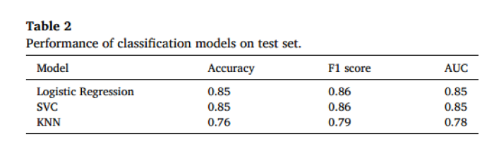 利用预测的叶绿素和类胡萝卜素浓度对野生型和HY5型番茄幼苗进行分类。为此训练了基于逻辑回归、支持向量机(SVC)和K最近邻(KNN)的分类模型,将番茄幼苗的输入样本分为野生型和HY5型。模型训练是在包含三种色素浓度和相应基因型标签的真实化学数据集上进行的。然后,使用训练好的分类器和ELM预测的色素浓度作为测试输入,来确定番茄幼苗的基因型。分类器的主要结果在表2中进行了总结。从表中可以观察到,逻辑回归和SVC在测试集上达到了最高的准确度得分,约为0.85。此外,这两个模型的F1分数和AUC也达到了相对较高的值,分别为0.86和0.85,表明这些模型在处理野生型和HY5型的二分类问题上具有高水平的表现。