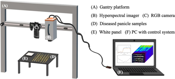 目前,传统的病害监测方法主要依赖于人工目测,这种方法不仅主观性强、费时费力,而且难以在早期阶段准确识别受感染的穗粒,尤其是当病害程度较轻时,在田间环境下难以肉眼察觉。相比之下,遥感技术,特别是高光谱成像技术(HSI),提供了一种高*、无损的病害监测手段。已有研究表明,高光谱遥感可用于检测多种作物病害,并能够在病害出现肉眼可见症状前提供早期预警。然而,目前大部分研究集中在叶部病害检测上,针对水稻穗部病害的研究较少。由于穗粒的三维形态结构复杂,传统的非成像光谱仪难以*确观测其光谱特征,而高光谱成像技术结合近距离成像光谱则能够获取穗部的空间和光谱信息,从而提高病害监测的精度。