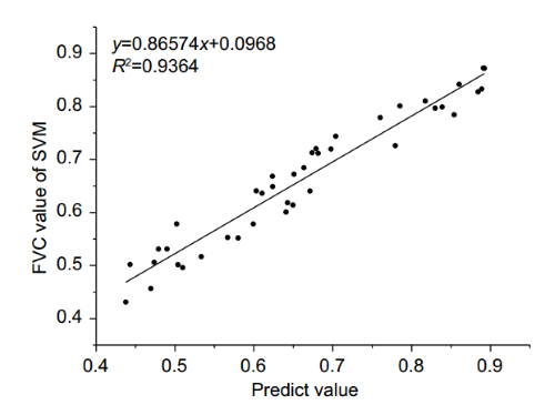 图7.基于SVM的UAV高光谱小麦图像的FVC拟合结果