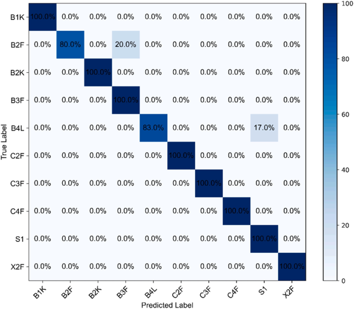 图3. 1D-CNN模型分类结果的混淆矩阵