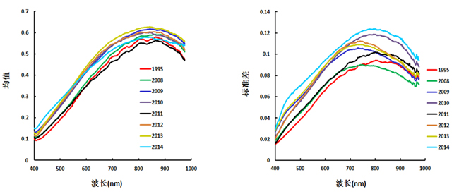 图 6  不同年份小麦均值、标准差的光谱特征变化