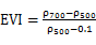 PCA变换的RGB彩色合成,让我们更客观地看到不同年份小麦种子在图像显示上的差别,为了进一步分析不同年份小麦种子的差别,分别提取不同年份的小麦种子,在提取不同年份小麦种子的基础上分别提取其均值、标准差等特征,不同年份的小麦种子的均值、标准差变化如图6所示。从图6可知,无论是小麦种子的均值或标准差,其不同年份的小麦种子光谱曲线非常一致。从均值来看,在500 nm处不同年份的小麦种子区分相对明显;从标准差来看,700 nm处不同年份的小麦种子区分相对明显。因此本研究利用这两波段分别构建NDVI和EVI光谱指数,NDVI和EVI的计算公式如下所示: