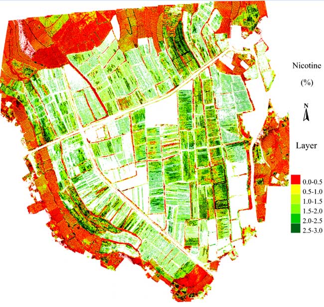 图9 烟草机载高光谱数据及烟草的烟碱反演图