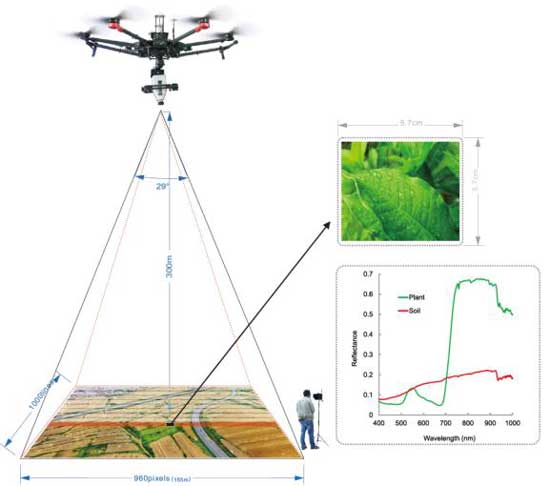 GaiaSky-VIS/NIR camera provide extremely high resolution images by scanning and taking multiple images to construct a hyperspectral datacube. Hyperspectral imaging devices (GaiaSky) for lens scanning obtain slit spectra by projecting a strip of the scene onto a slit and dispersing the slit image with a prism or a grating. In lens scanning, each two-dimensional (2-D) sensor output represents a full slit spectrum (x,λ). The NUC integrated into the system to control system operation ,data acquisition, and analyze , so the spatial dimension is collected through the scanning motor movement.