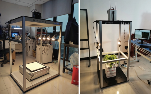 测试植物表型、绝缘体材料、大面积烟草烟叶等体积较大的目标时,标准的暗箱无法满足应用,为此设计定制版本的平台来满足用户的实际需求。简易平台可以搭载“ image-λ”系列的高光谱相机并配合不同尺寸的精密电控平台来实现高光谱数据影像的获取,也可以兼容 “GaiaField”系列高光谱相机,利用 GF 内置推扫结构或与外置电控平台分别实现扫描成像的应用 ( 分别对应 :相机移动、样品移动 )。为用户提供了“一机多用”的开放式平台,节约了成本,提升了效率。